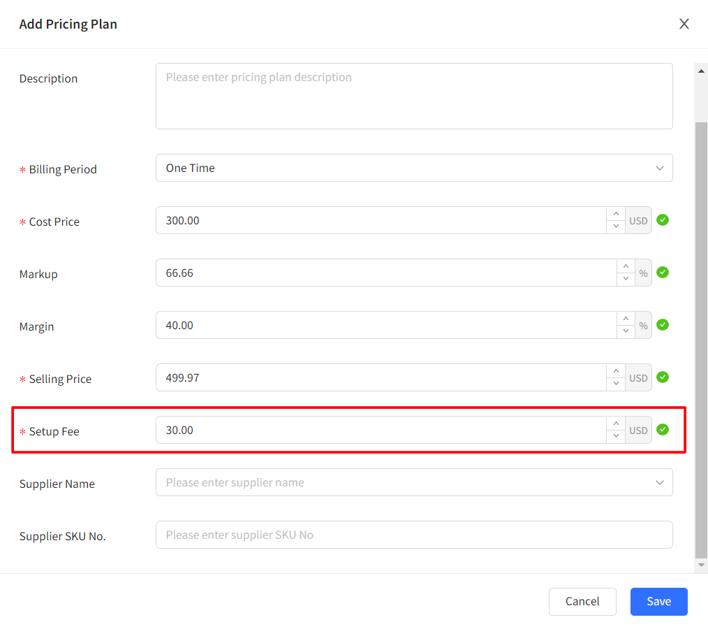 For certain services and products, you may add setup fees along with the selling price for the product.